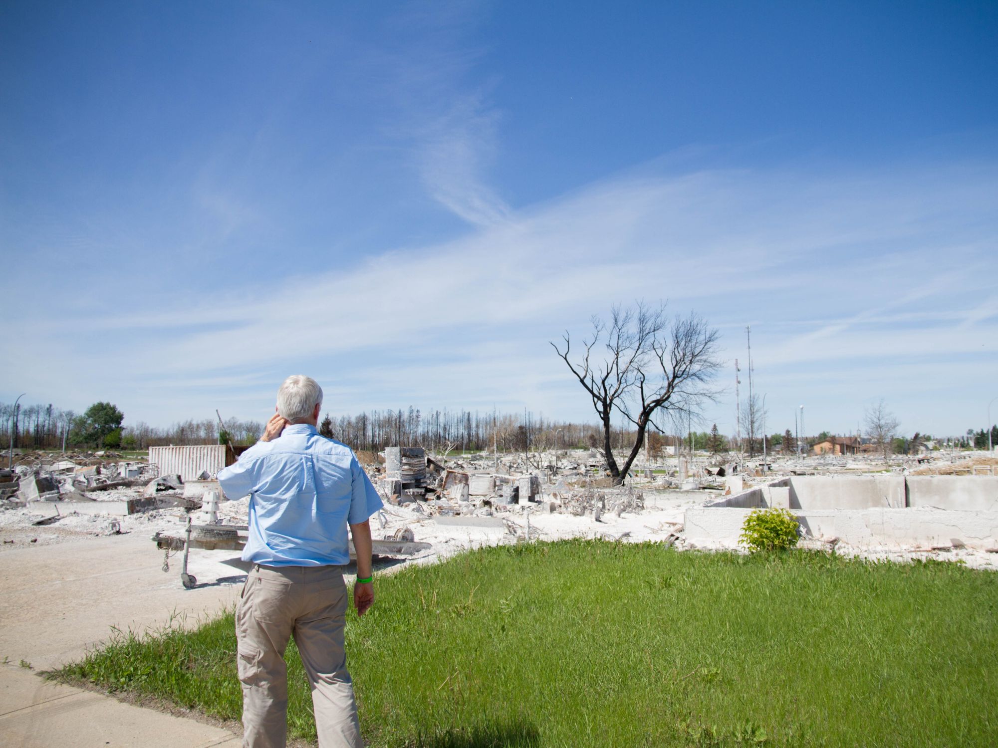 Ross Penner, MDS Canada Executive Director, overlooking the destruction left by the wildfire that swept through Fort MacMurray, Alta., 2016.