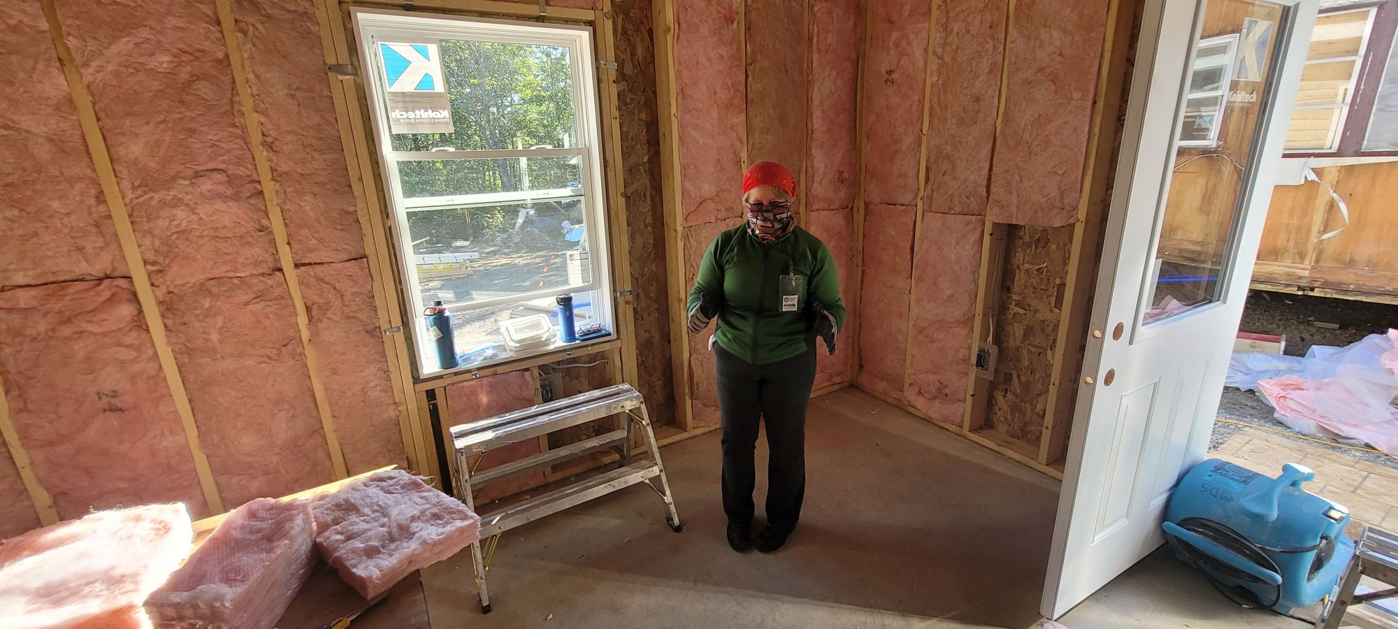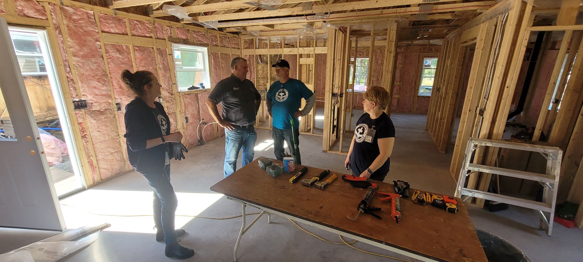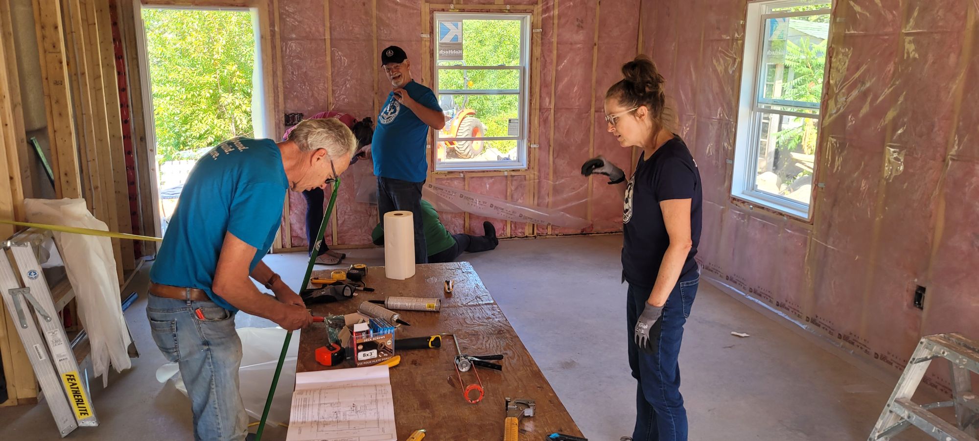 Thankfully, one of this week’s volunteers had experience installing all the intakes and exhausts as needed for the air exchanger. Discussions were had with others experienced with Air Exchanger installation to provide guidance for the installation. The range hood and dryer vent were also plumbed in allowing for a smooth drywall installation.