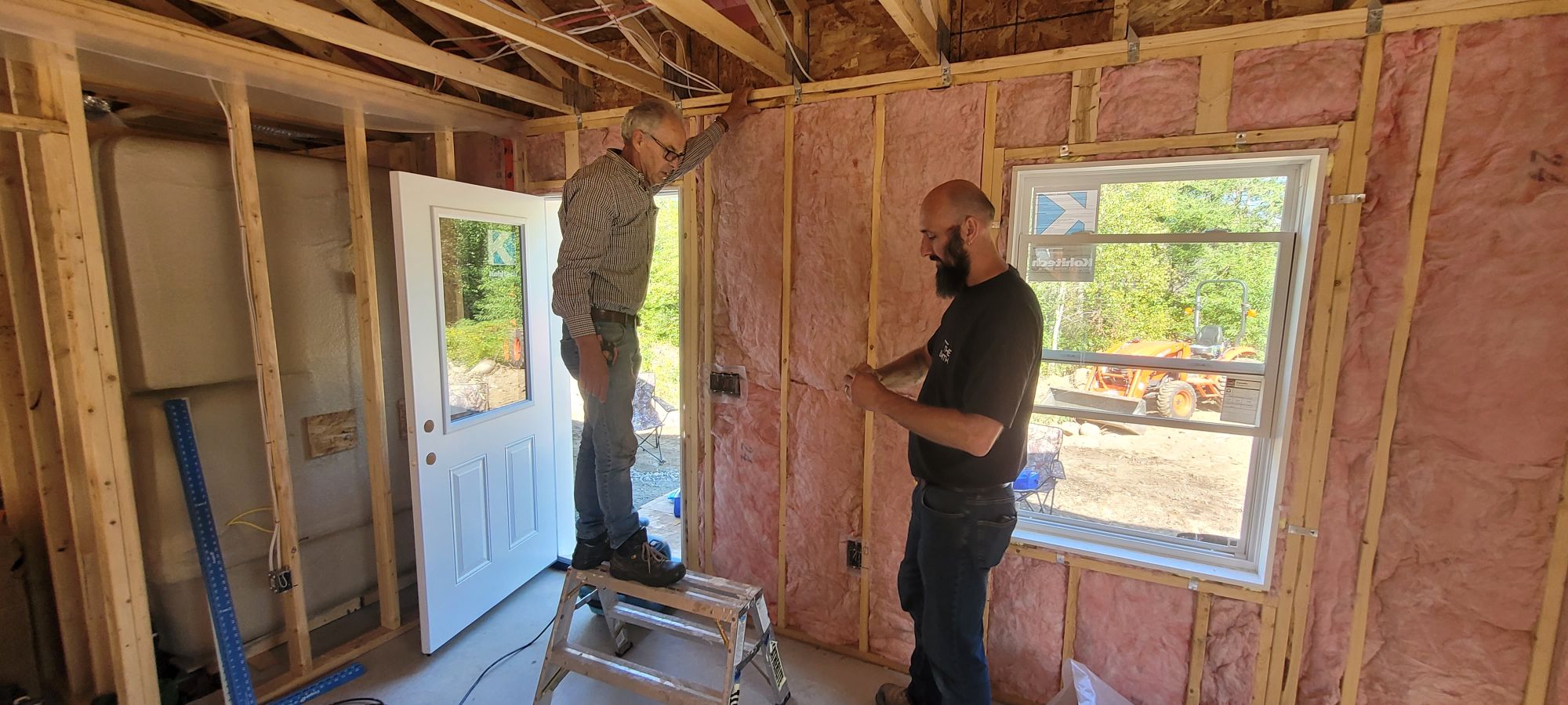 This week the crew worked at insulating the walls and installing the poly. The district building inspector dropped by and was pleased to be able to give us a verbal go-ahead to proceed with drywall installation.