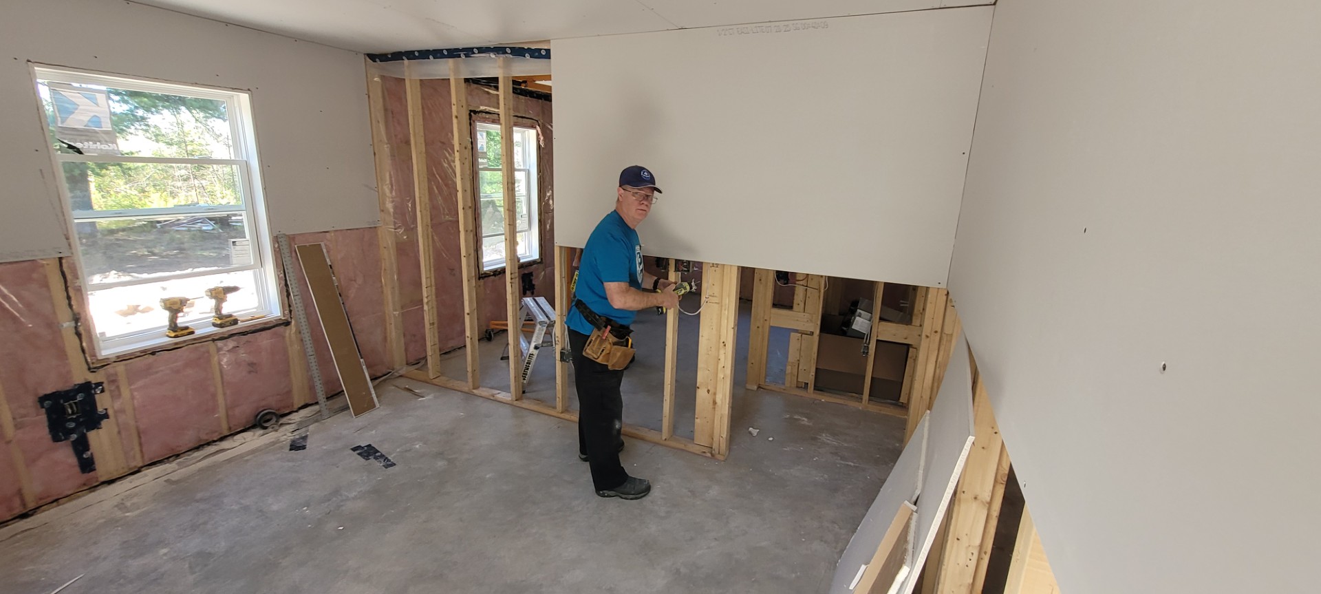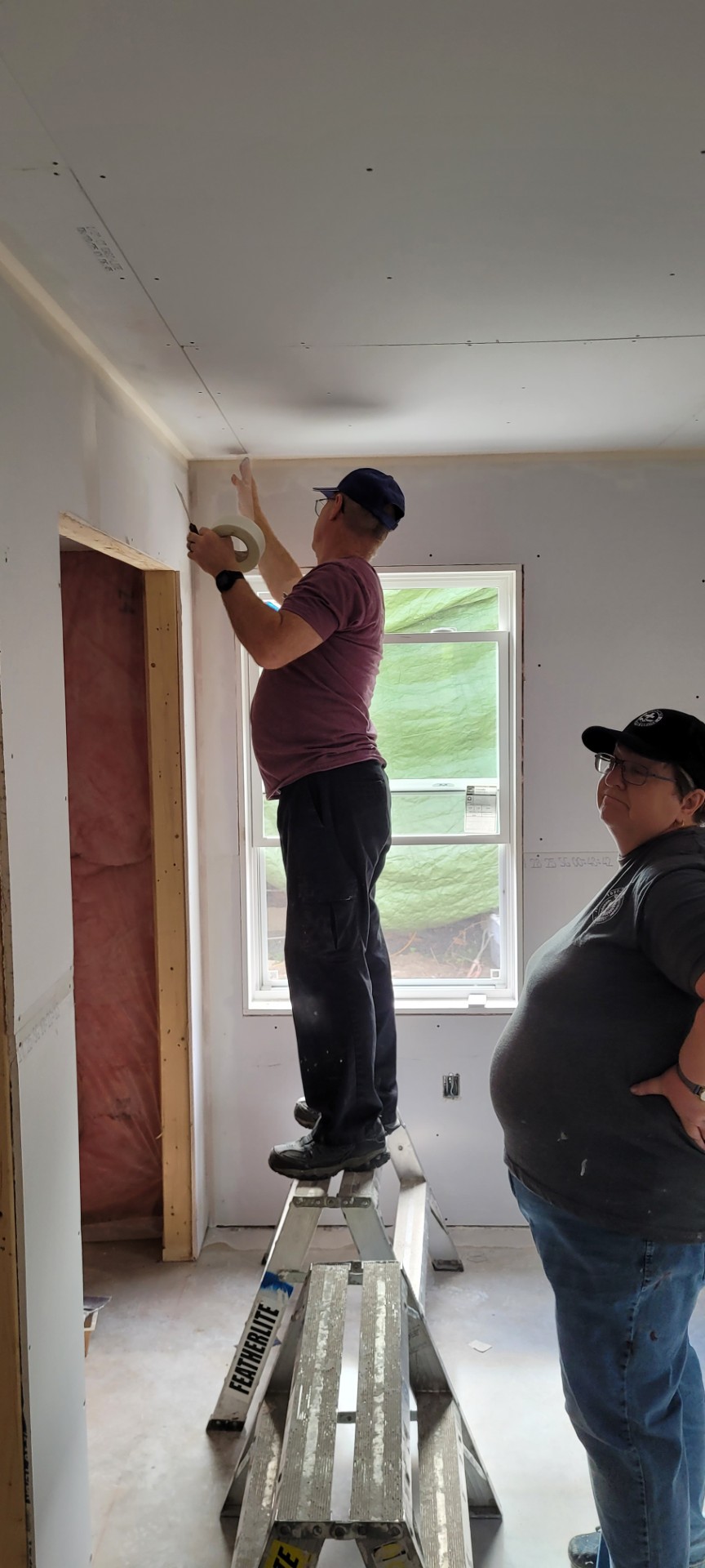 Work centered on drywall hanging, taping, and mudding. Regional government visitors reviewed our progress, expressed their appreciation, and the homeowner shared positive feedback. We had a delightful supper with our homeowner one evening.