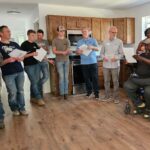 Besides working on the new builds, repair jobs included mucking out and removing wet material at a local Methodist church after a broken pipe flooded the sanctuary, removing old flooring and installing new at the Cooper house, and painting, trim work, cabinet repair, and door installation at the Cooke house.