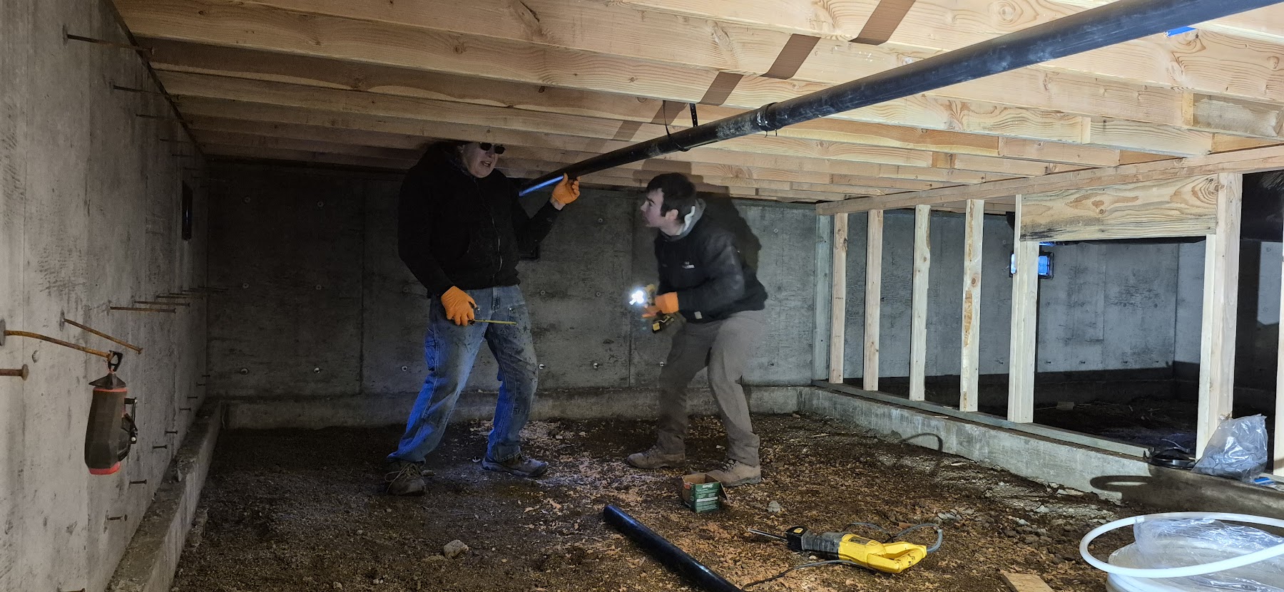 This week we welcomed 6 skilled and hard-working men from Wisconsin, as well as Dick, a plumber from Washington. And the weather was great – dry, sunny, and mild. We did not have to deal with mud this week!