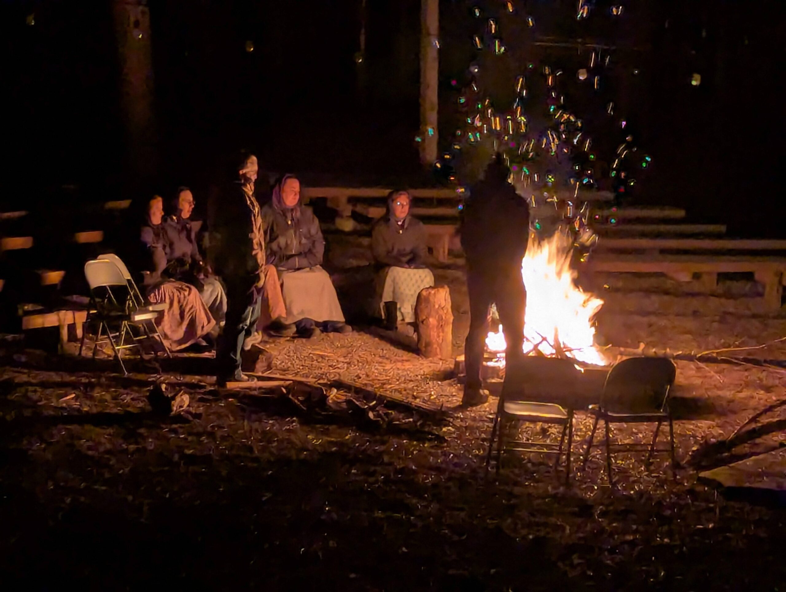 Several volunteers noticed a fire circle near the bunk house, so we got permission to use it. Scrap wood and gathered branches were used to build a campfire Thursday evening. It was a fun time of singing and enjoying the warmth on a cold evening.
