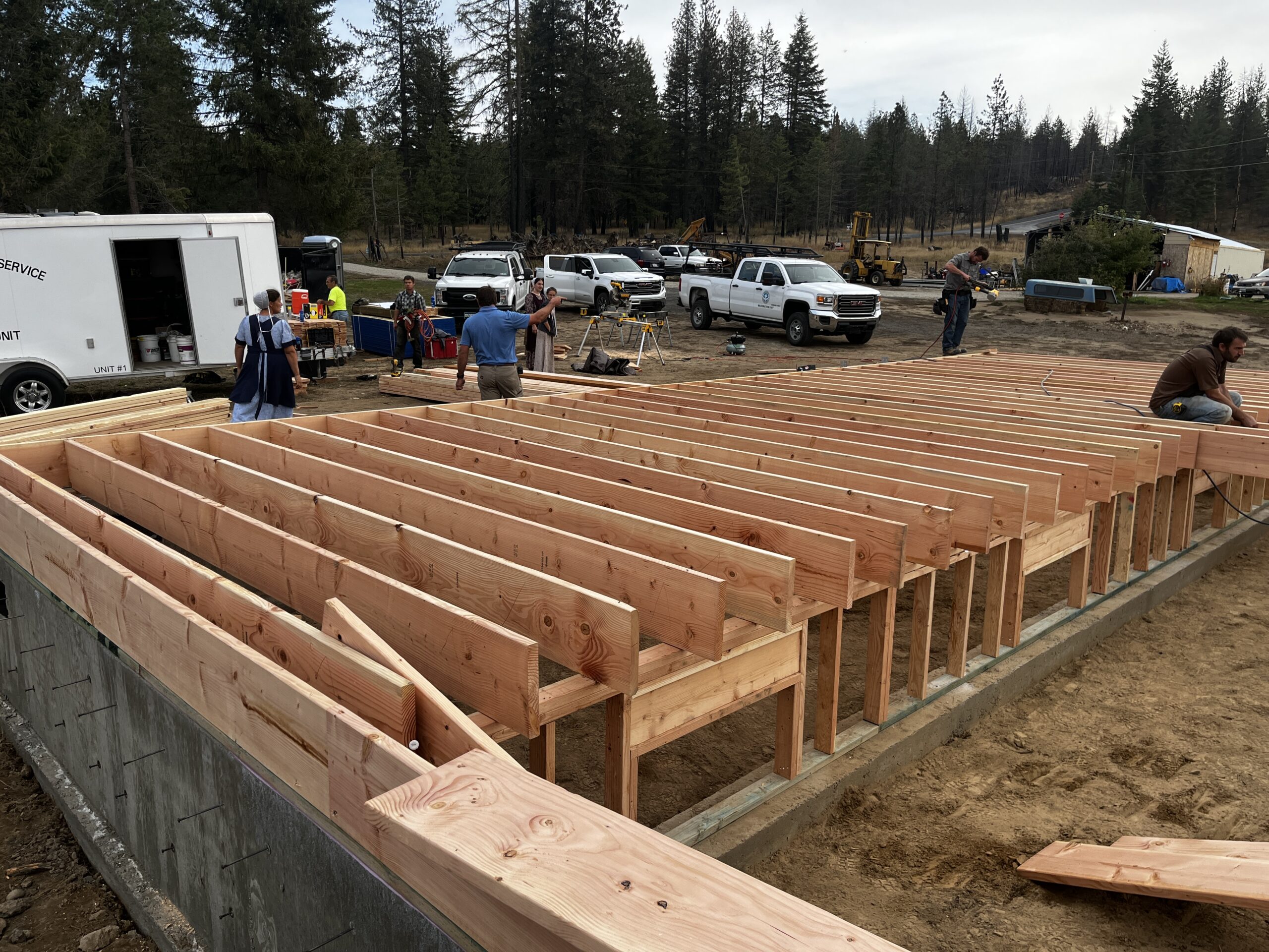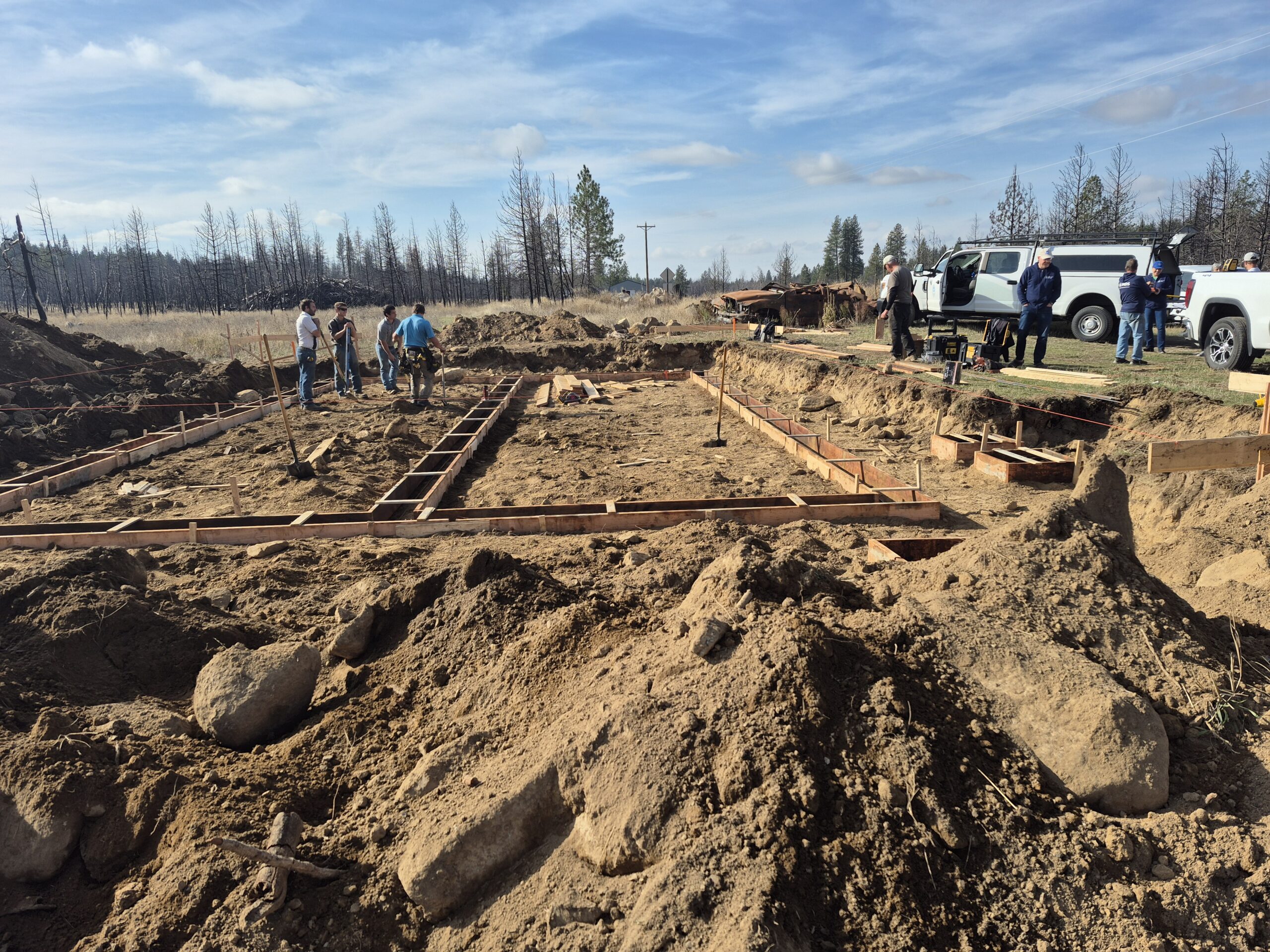 This week marked the third week of work in Elk, Washington, where 10 weekly volunteers from the Lancaster, Pennsylvania area joined one year-long and nine long-term volunteers. Together, the team made steady progress—completing the cement work on two foundations and pouring the footings for a third site.