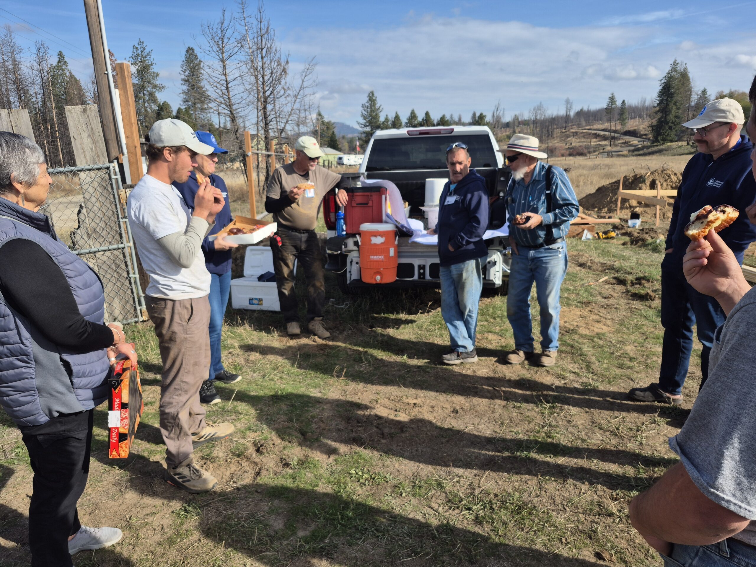 Homeowner Bill has been thrilled to see his home take shape after two years of living in a small trailer. To express his thanks, he invited all of us to lunch at his property on Wednesday.