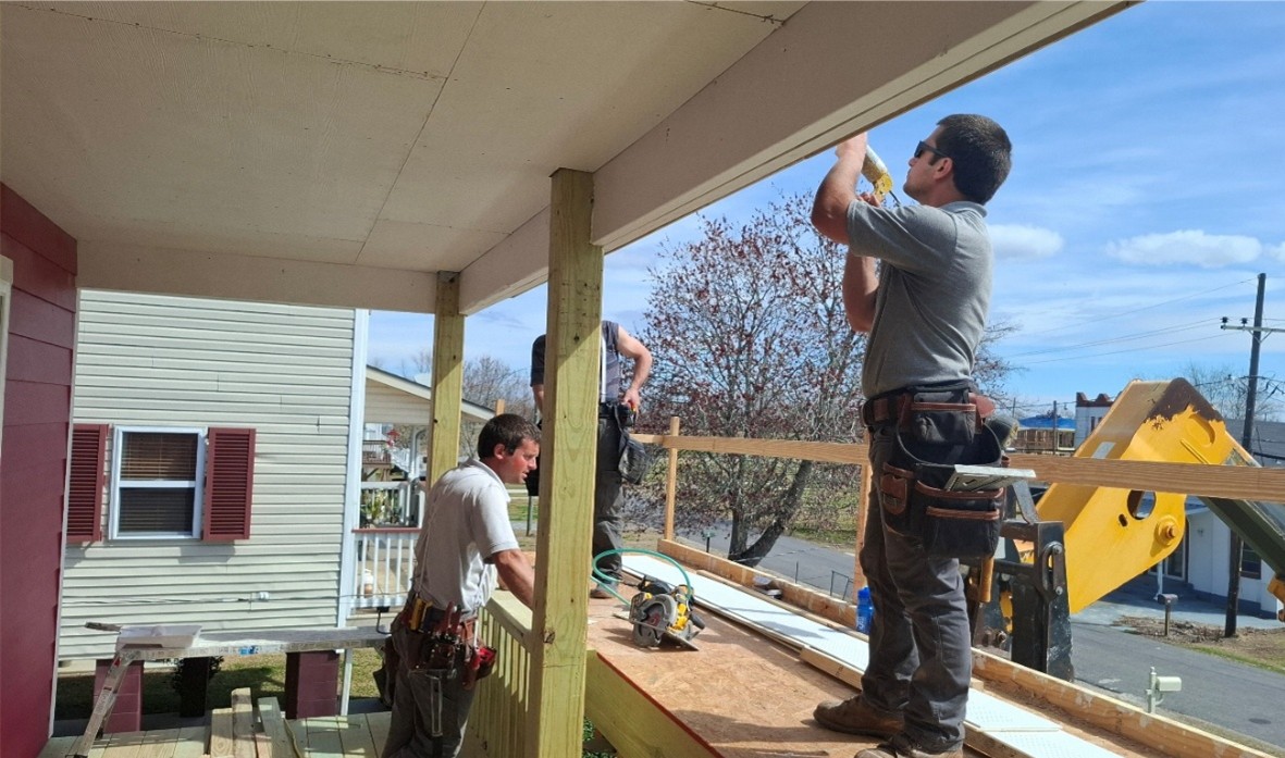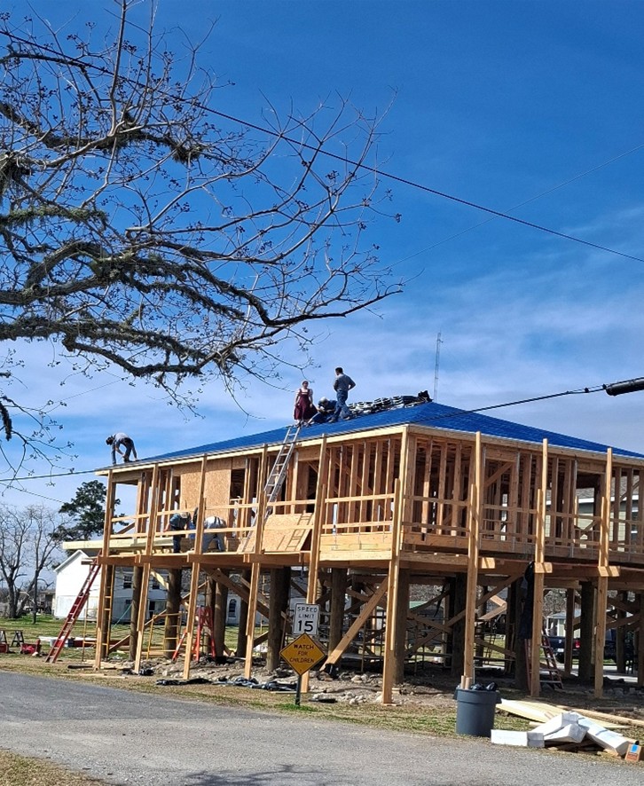 Two homes are now closed in and the third is well on its way. Insulation was installed in one house. Decking is completed on two. Roofing is complete on two. The interior work can now begin.