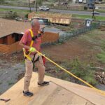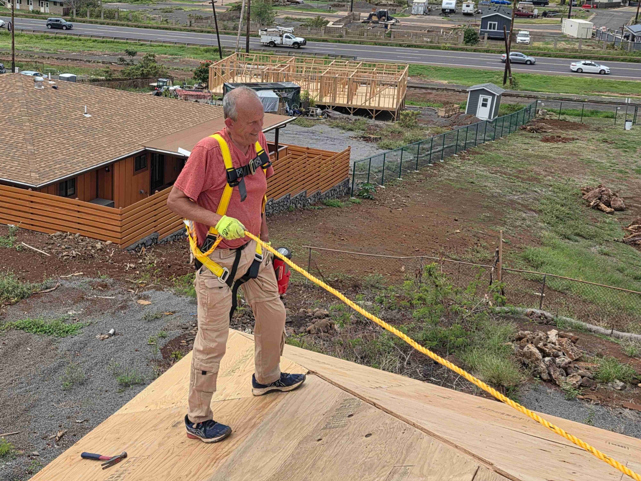 The group at Valerie’s house worked on framing and roof preparation, They set fascia and spent a couple days installing roof sheeting. They moved scaffolding and finished preparing for next inspection.