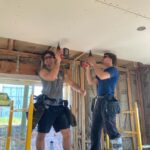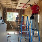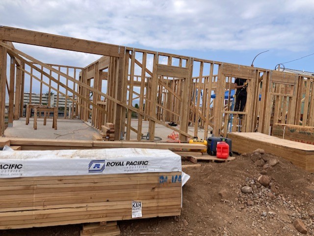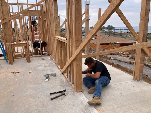 The same work from Tuesday continued on the Kahahne and Yadao houses on Wednesday.  A few volunteers started painting the Yadao house as well. The third crew began framing for the Lanai beams and fastening hurricane strapping on the Ho’opai house.