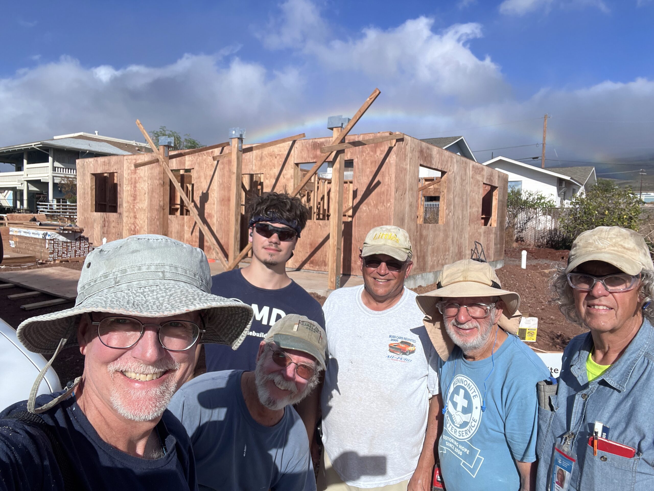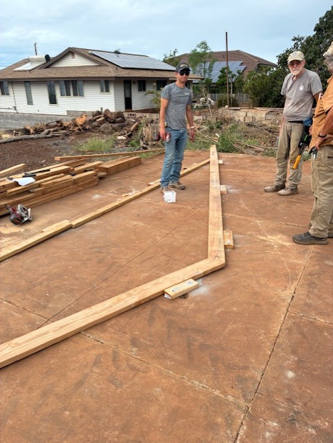 This week in Lahaina, volunteers continued steady progress on several fire recovery projects. House 3, a new build, is moving forward, while updates are pending for House 4 as the team works with Brandy to confirm homeowner names and signatures. House 5 also requires homeowner signatures, which will be gathered using the ADU agreement established with the church prior to MDS arrival. At House 6, volunteers focused on framing and molding. House 7 is awaiting a job card; the house was partially built up to the walls before volunteers arrived. The team plans to install windows and siding. This auxiliary dwelling unit was added to the list after the homeowners were forced to release a faulty contractor who had scammed them.