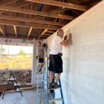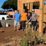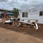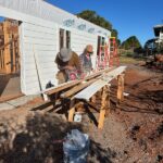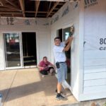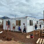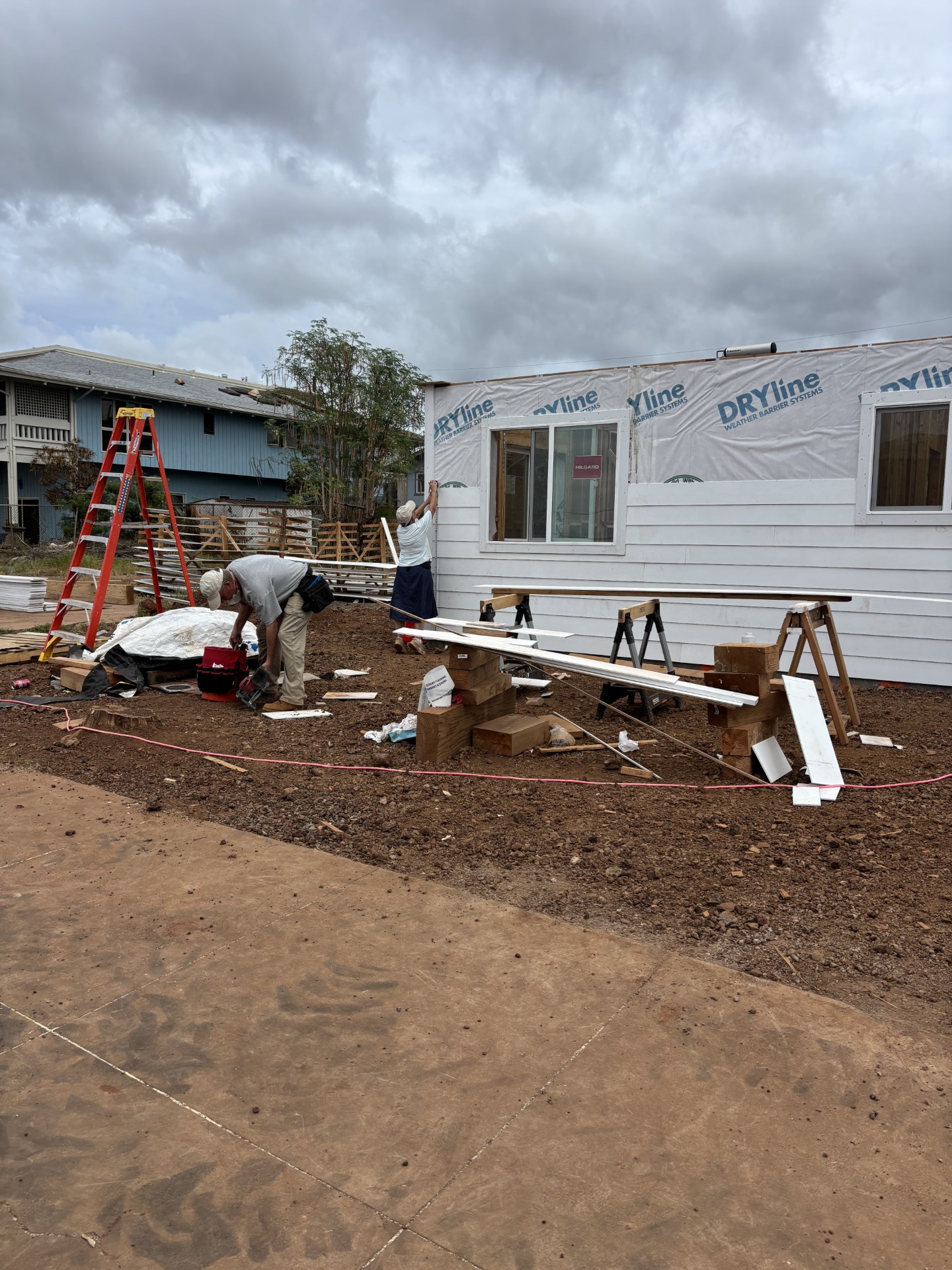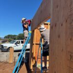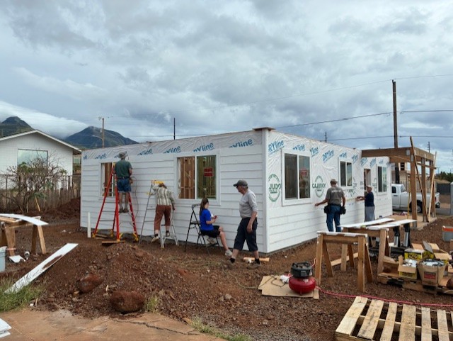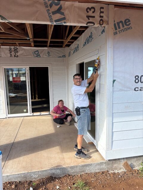 On Monday morning, work continued on three houses. House #1 had windows and siding finished and is now waiting for trusses. House #2 had volunteers putting up siding, installing windows and caulking, and is now ready for trusses.