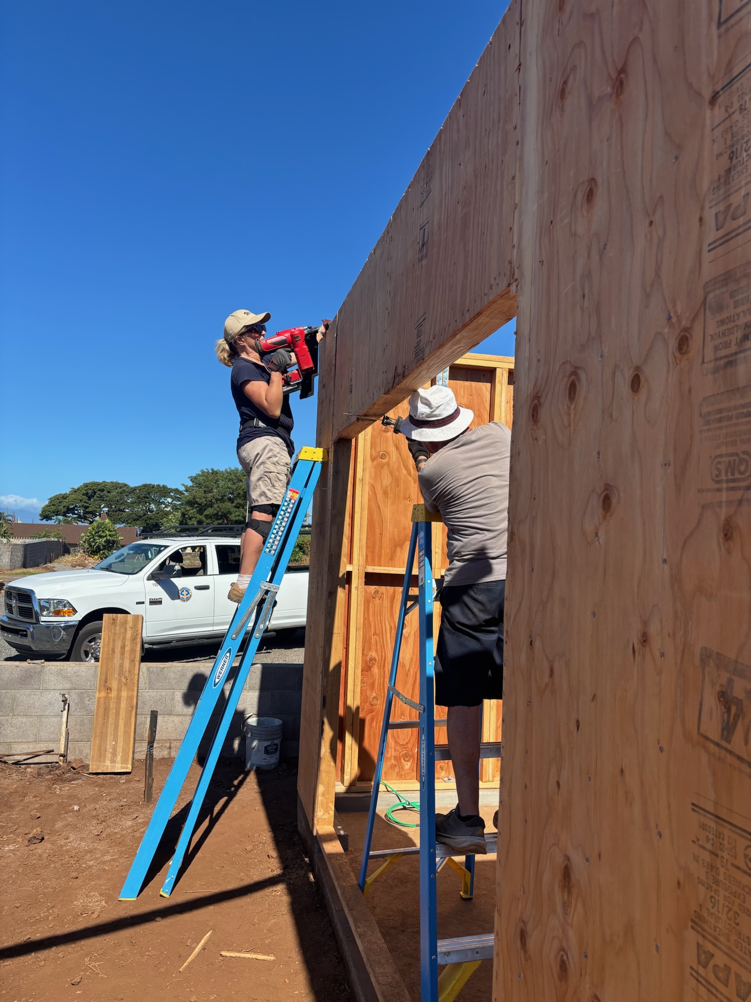 Speaking of trusses, MDS was granted permission to build their own, so Andy and Chris have been diligently working together each day. We now have five volunteers helping to build the trusses for House #2.