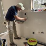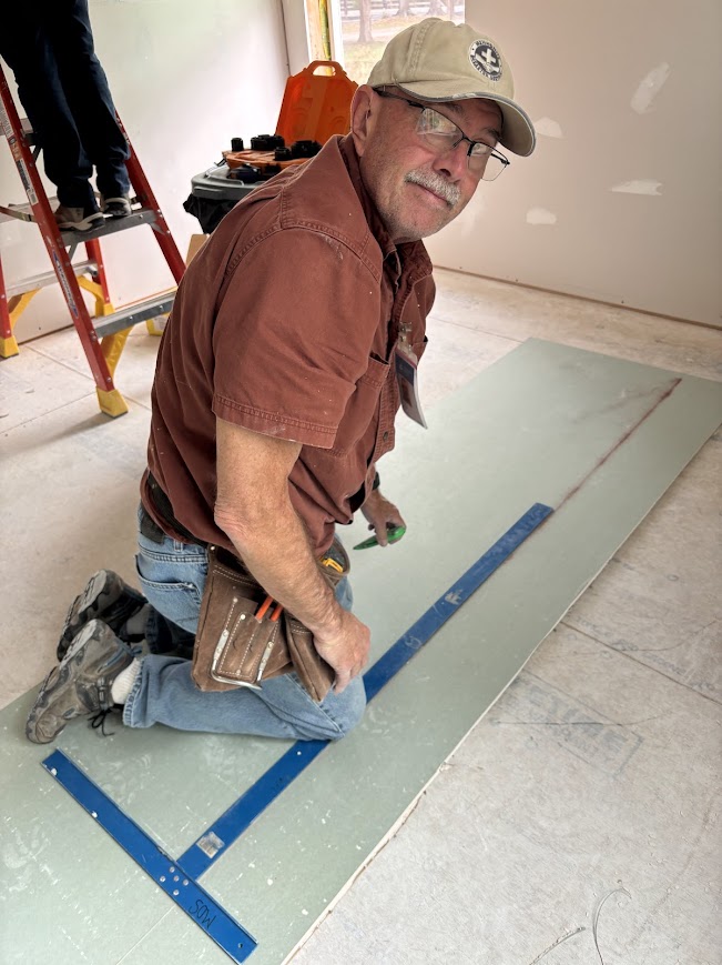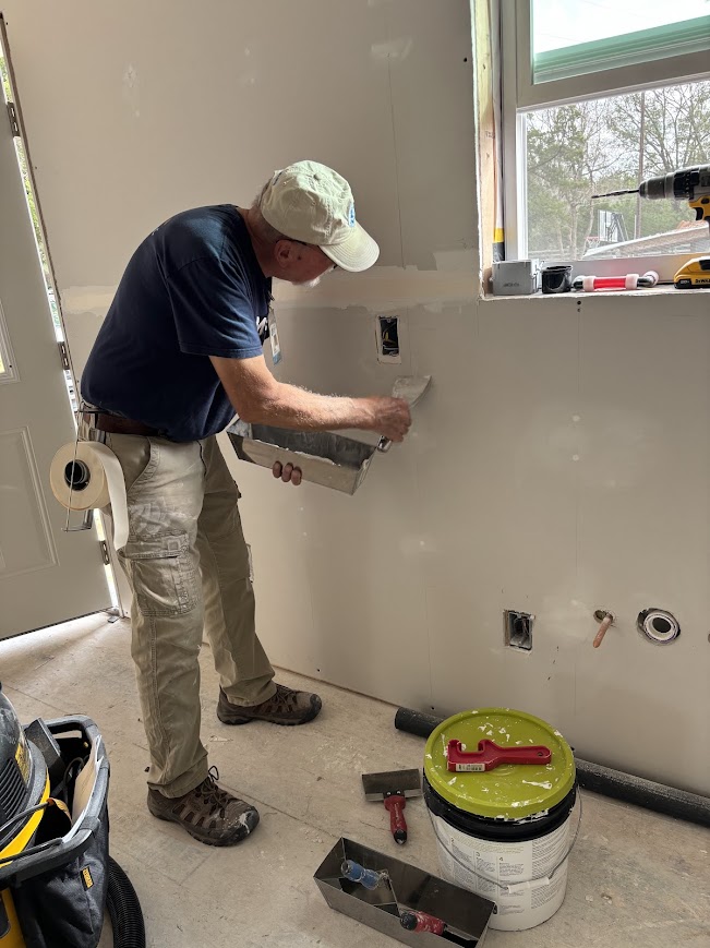 This coming week, the window boxes will be installed, bathroom door frames re-configured, and drywall mudding and sanding will continue in the Hayes’ home. The team will also begin painting the Renz home in Porter once the mudding and taping is completed there.