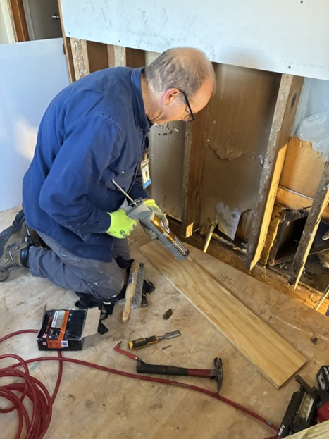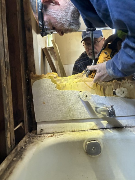 Week one started with project #2 on Towana and Perry’s home. Damage was caused by flooding and affected the flooring, drywall and bathrooms. Work began in the two bedrooms fixing drywall and putting down subflooring. Also, work on plumbing on the water heater and bathrooms. Progress was made on the drywall with hopes of painting next week. Plumbing work for the bathroom and hot water heater were started and new tub/shower were purchased to install when plumbing is finished.