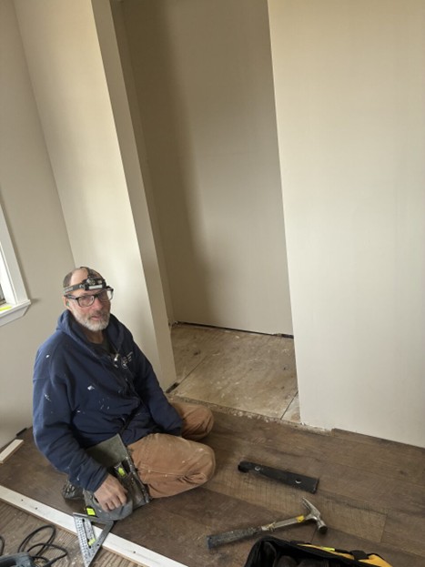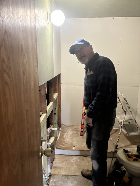 This week was a shorter week since we did a 5 days last week. We worked at Wilke’s home and made some good progress Tues.-Thurs. Drywall is going up in the living room ceiling and walls and flooring in the bedrooms. The bathroom is getting closer to being finished with the plumbing and will be ready for taping and mudding next week.