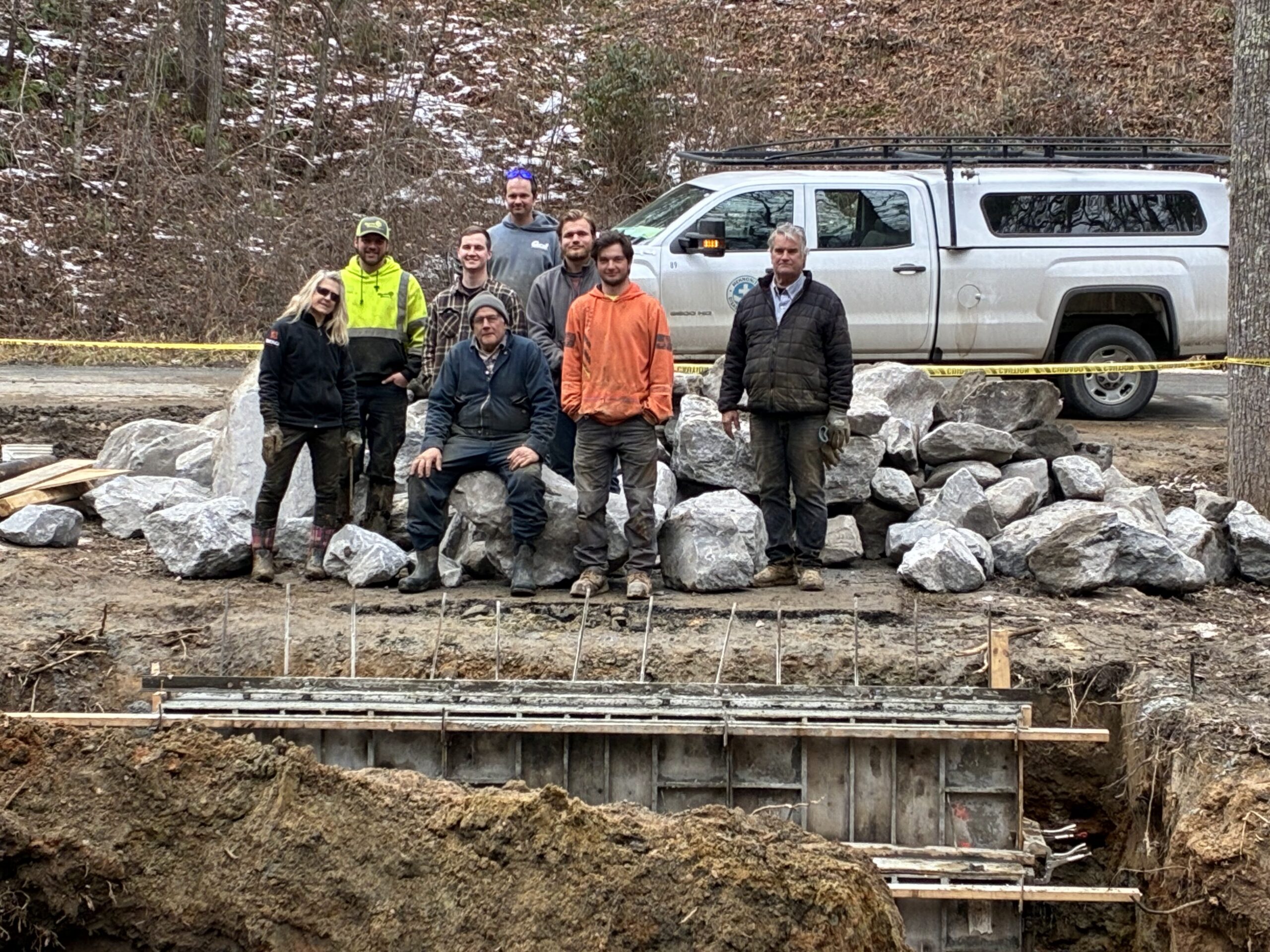 Despite working in the ice and snow, a lot was accomplished and we had a great week beginning the bridge project here at Bat Cave.