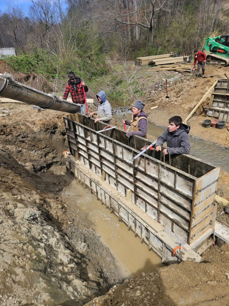 We had a group of young men who came from the Shiloh Ohio area. They all knew how to use the skidsteer and backhoe, so they took turns playing in the dirt! We had some very cool weather this week, in fact freezing temperatures, and rain, so the site got pretty messy! There was no unhappiness, just a lot of laundry to do. It’s all in a day’s work!