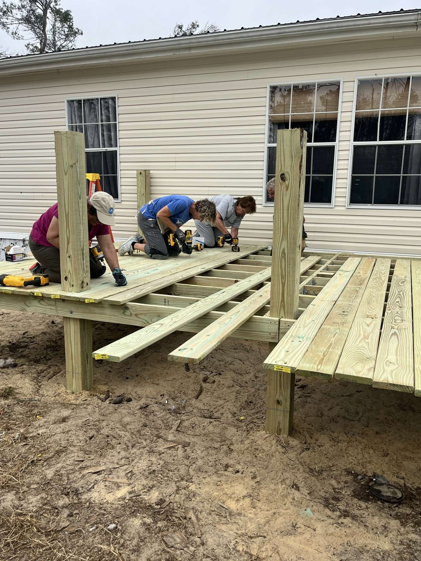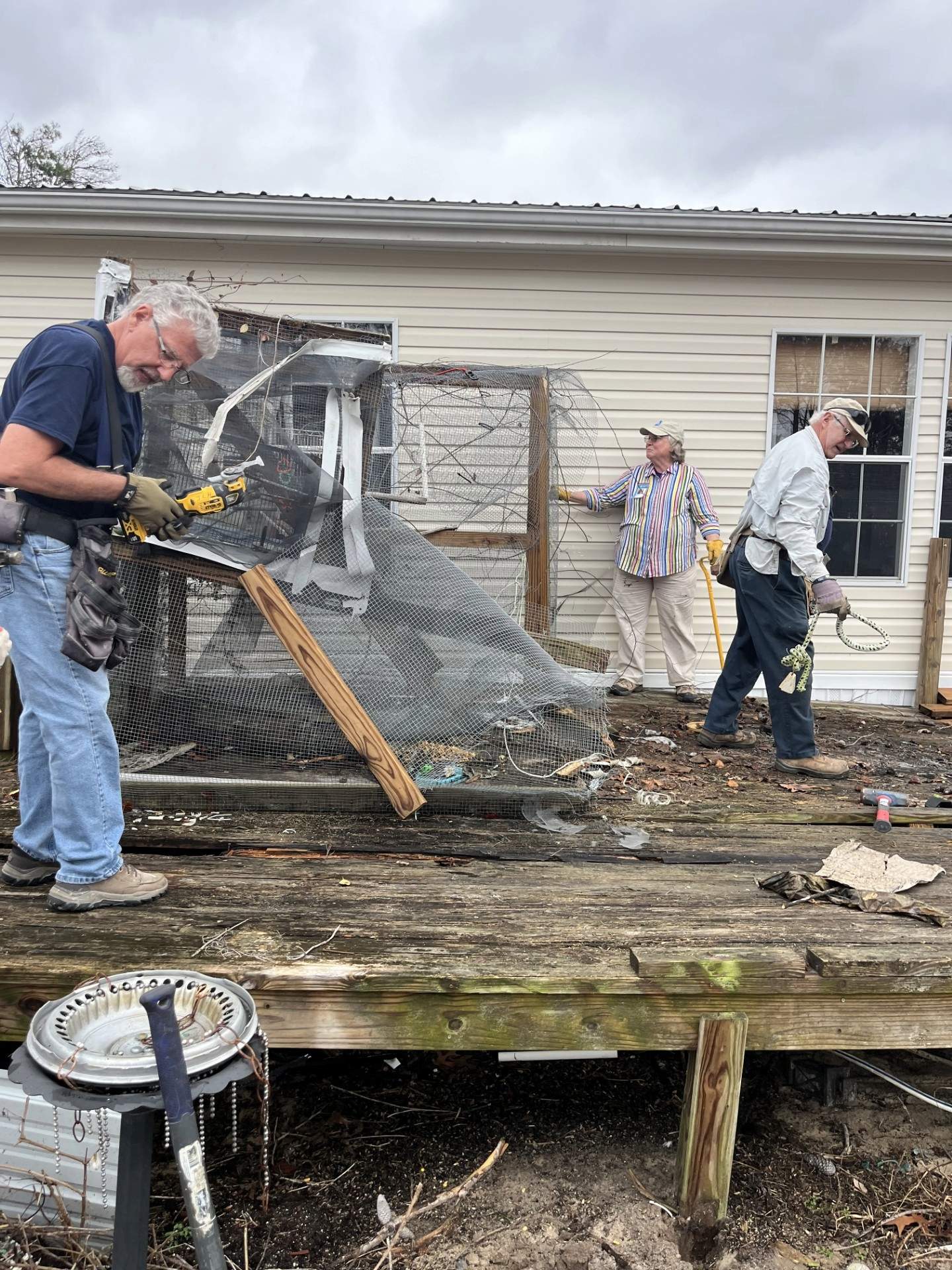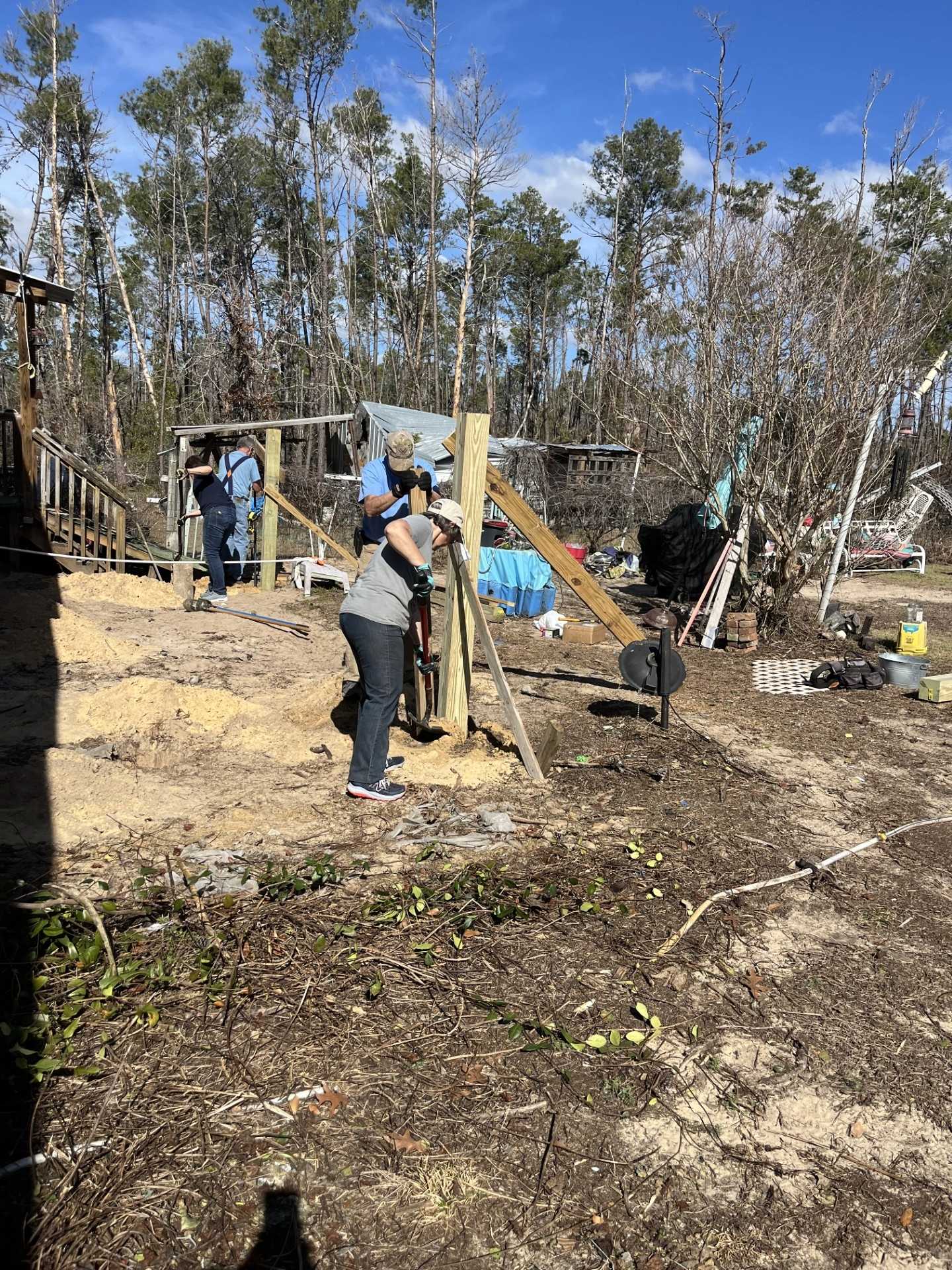 11 houses completed, some large jobs and some small. This past week the team was split between two homes: two worked a small project repairing a laundry room in Perry, while the majority worked in Steinhatchee where two decks (front and back) had been destroyed by falling trees. The old decks had to be removed, and the rebuild is well underway. Such a great team. They work so well together and accomplish so much in a day.