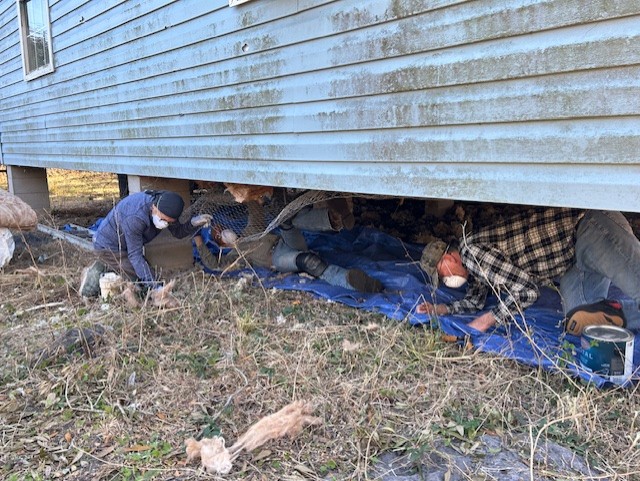 Our week began with a campfire Super Bowl Party. We welcomed the Austin’s, Ford’s and Hudak’s to the camp, which brought us up to 15 volunteers. The group split up to work on three houses, laying floors, building walls, insulating the underside of a home, and repairing ceilings. The week ended with a celebration house blessing for Tanja on Thursday, a campfire cookout Friday night, and the team is headed to the Crab Festival in Steinhatchee on Saturday. It’s been a great week with much accomplished; a team that works hard, and joyfully.
