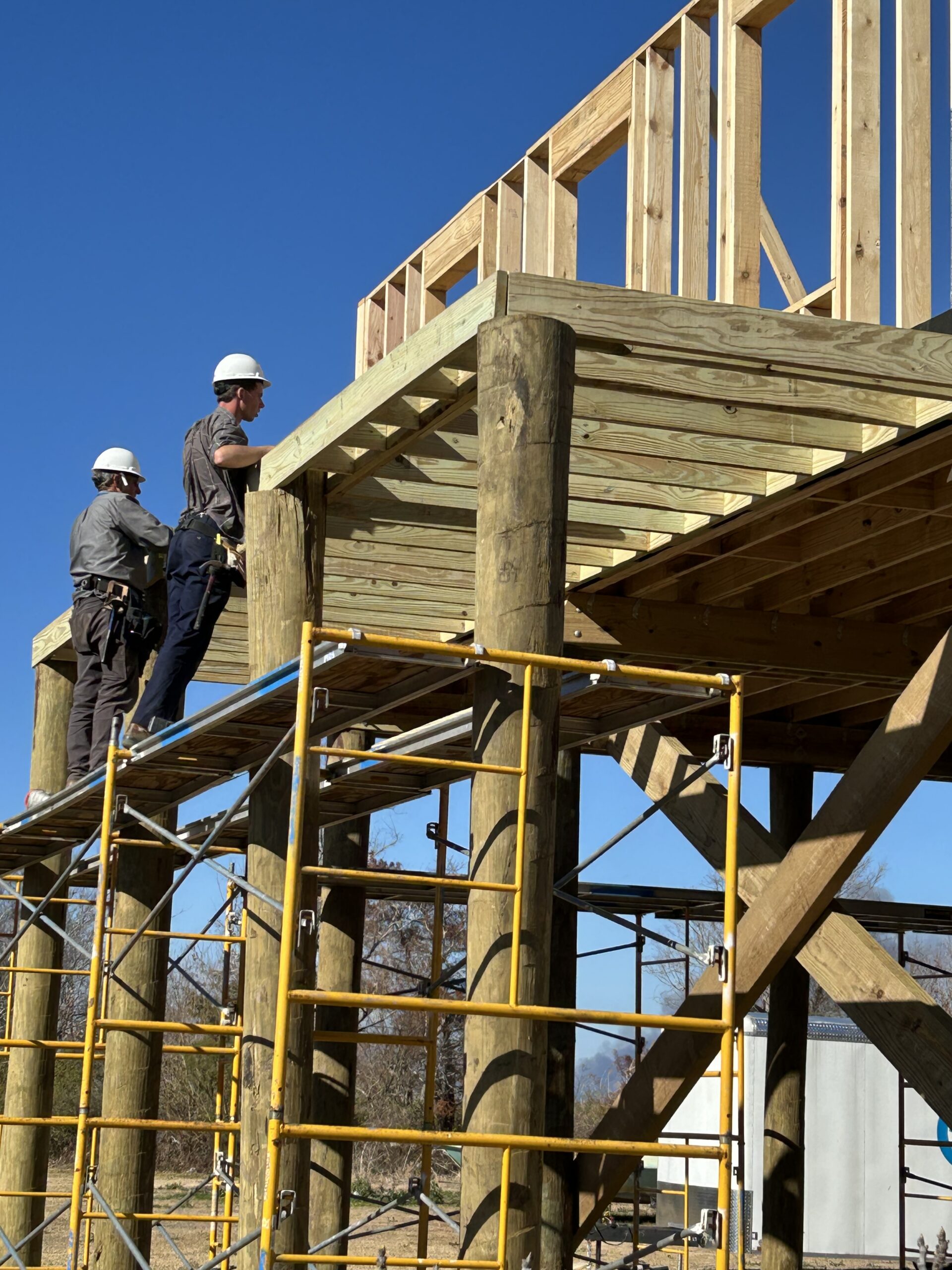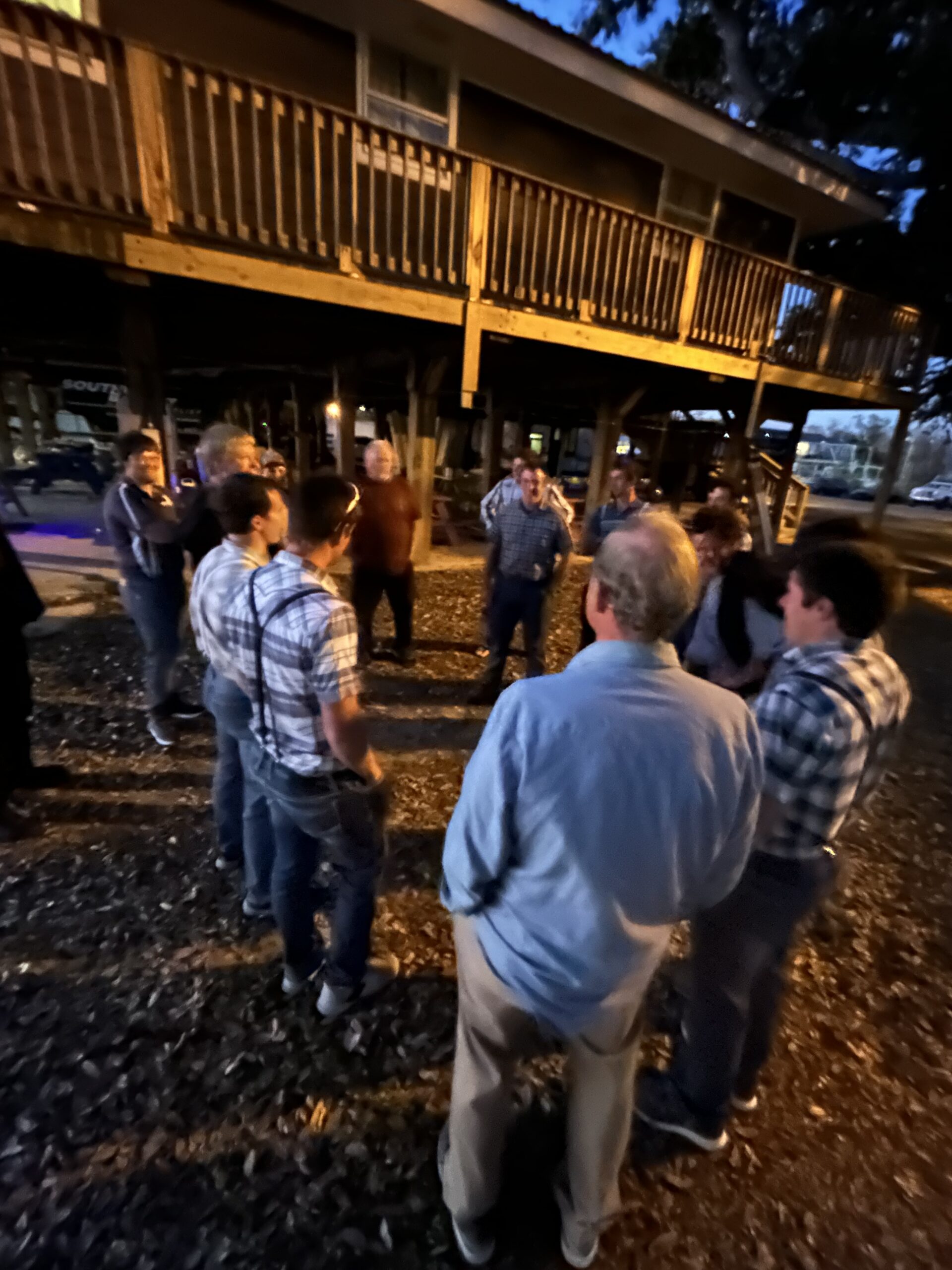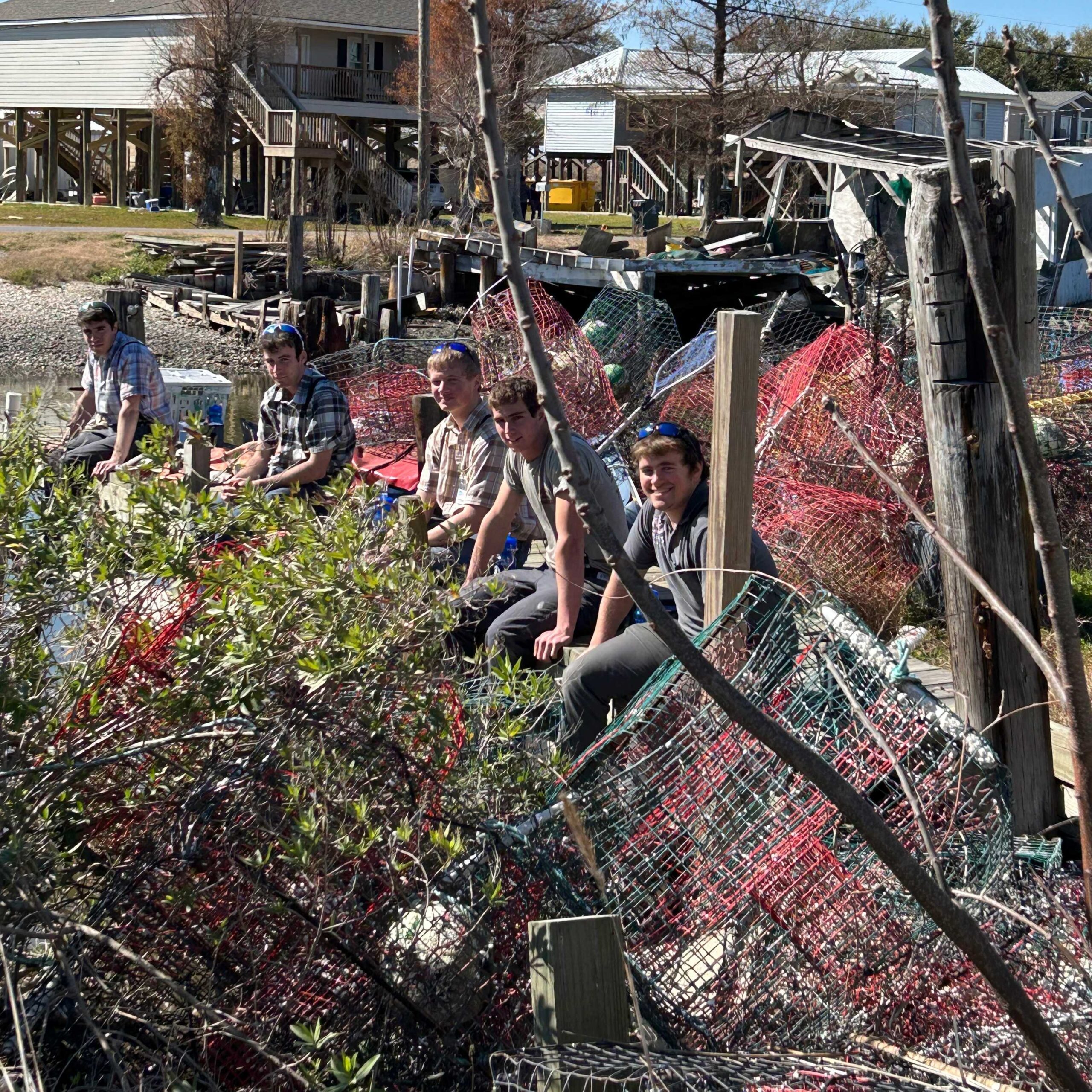 Jason, MDS driver of volunteers extraordinaire, with his assistant driver, Titus, transported 10 other young Groffdale conference men from Lancaster County to work with us in Pointe-Aux-Chenes, LA for the week of February 1 – 9, 2026.  Ingrid of Nova Scotia came with her husband, Ralph, Crew Leader for the month, to work for two weeks. She worked primarily painting. She is careful and productive. The volunteers worked on three different sites all week, and have instilled hope and enthusiasm in this community yet again.  They worked on project #4 (Grace) installing subfloor and exterior walls as far as they could before more pylons needed to be placed (these were completed on Friday). This team then moved on to project #3 (Jade) because the pylons were completed.  They installed the pylon beams, floor joists, subfloor, interior walls, and framed up a porch. They got a good start on the X-bracing also.