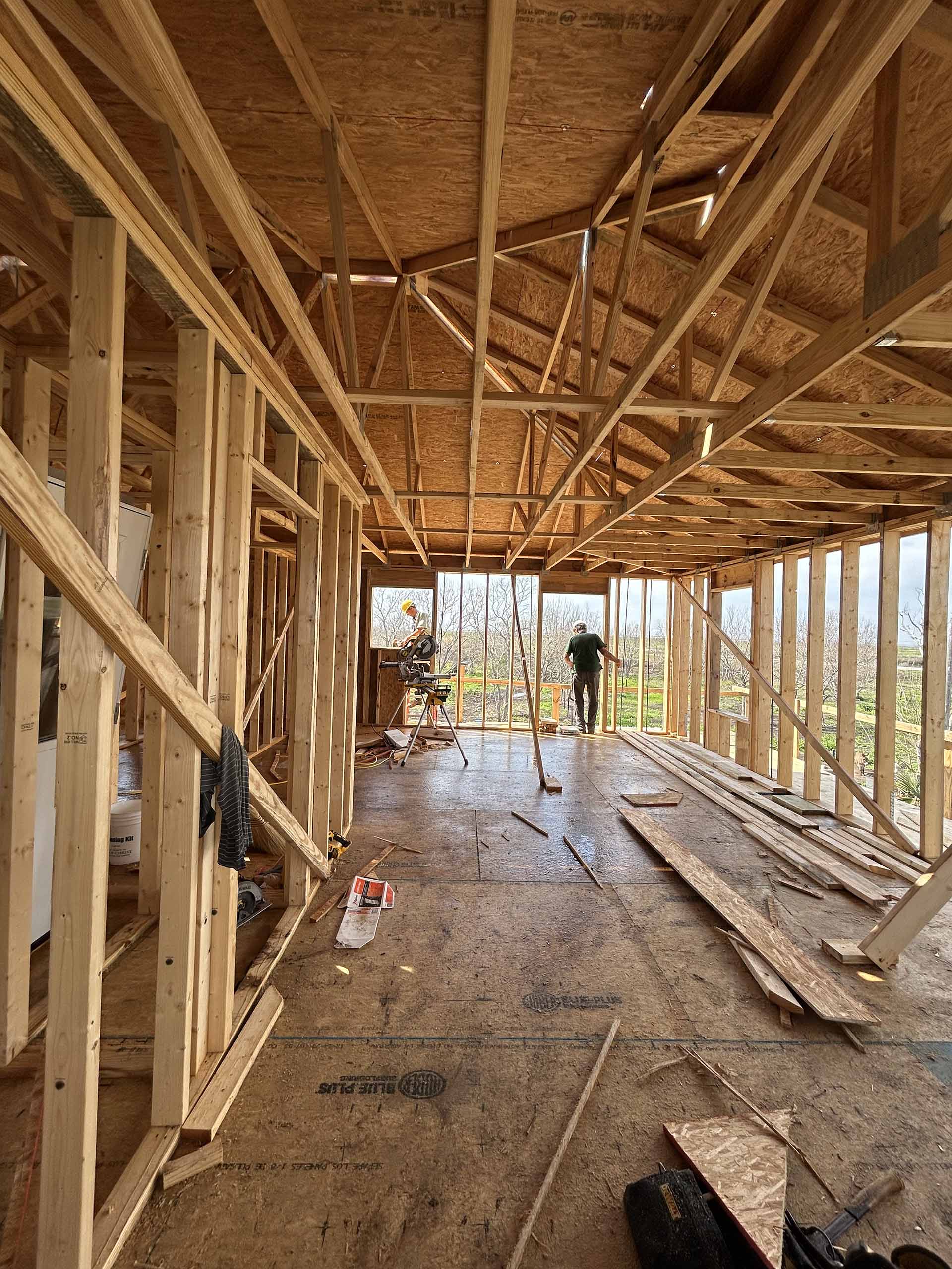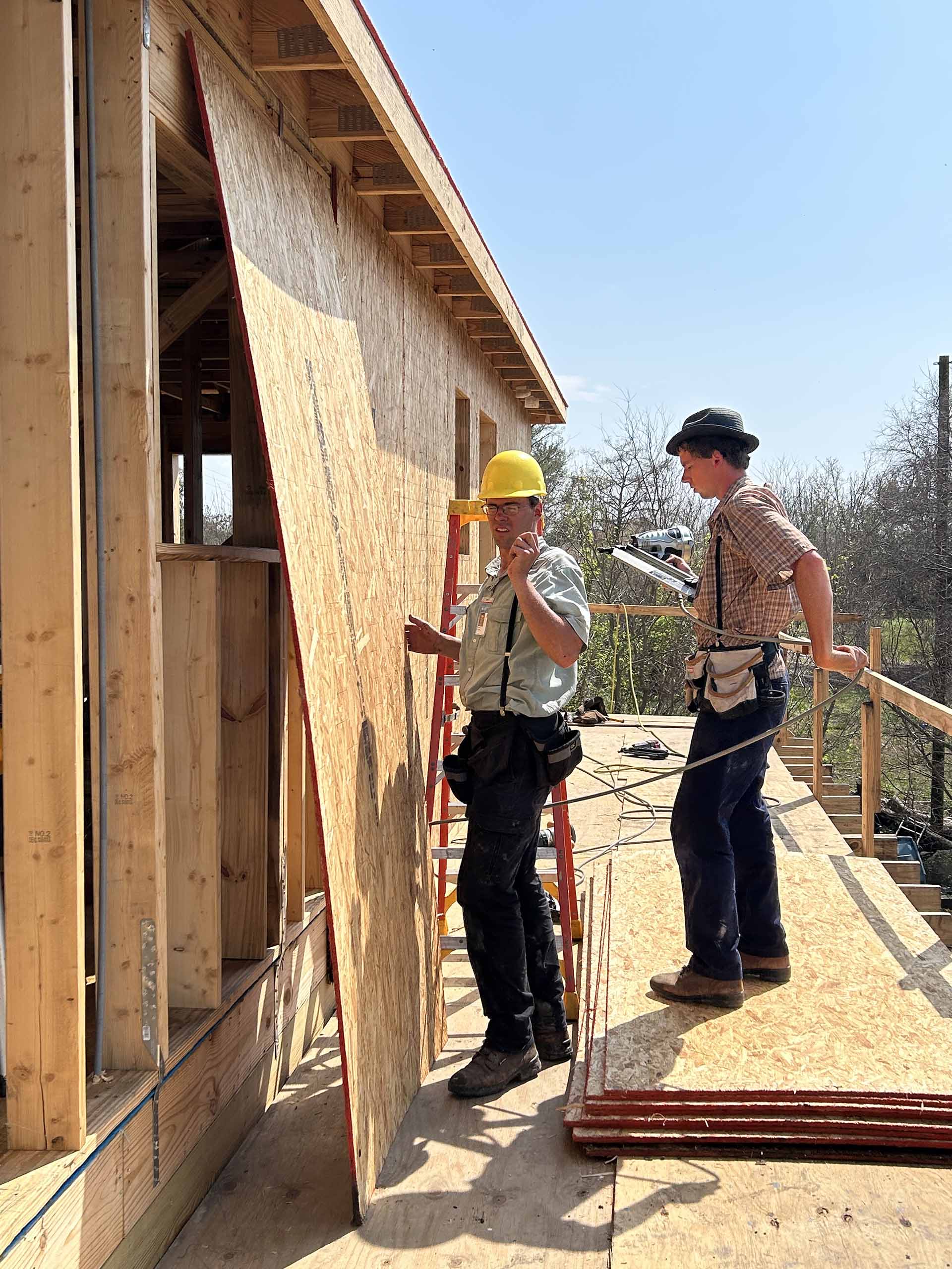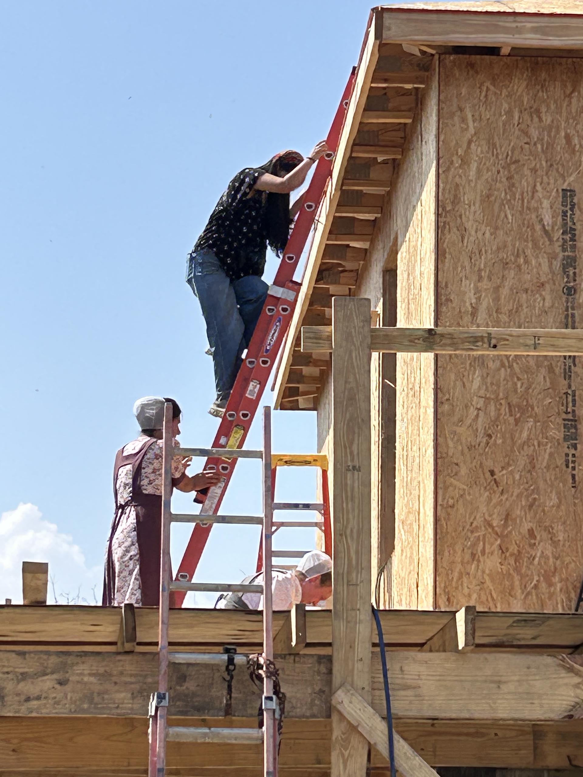 They earned every ‘penny.’ One house started with floor joists, and floor decking, walls, porch, trusses, sheeting and ice & shield were completed. With some concrete work also done, the house is ready for shingles and siding next week. At the same time, another house was sheeted, ice & water shielded, shingled, sided and painted. Yet besides, bases for 3 cisterns and air conditioner brackets were completed at 3 of the 4 sites. Was this group tired at week’s end?