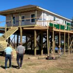 From the moment their feet hit the ground on Monday morning, they buzzed around like honeybees in a hive. Up and down ladders and stairs, in and out of the house, there was constant progress. Some began with finishing up details at Roger’s house. The rest at Jade’s finished partitions, porch beams and front steps. By the end of the week, they had the outside complete but 2/3 of Jade’s siding, and the second coat of paint. The electricians and plumbers were doing what they needed to do at Roger’s, and pylon beams, floor joists and half of the sub floor was on Norris’ house.