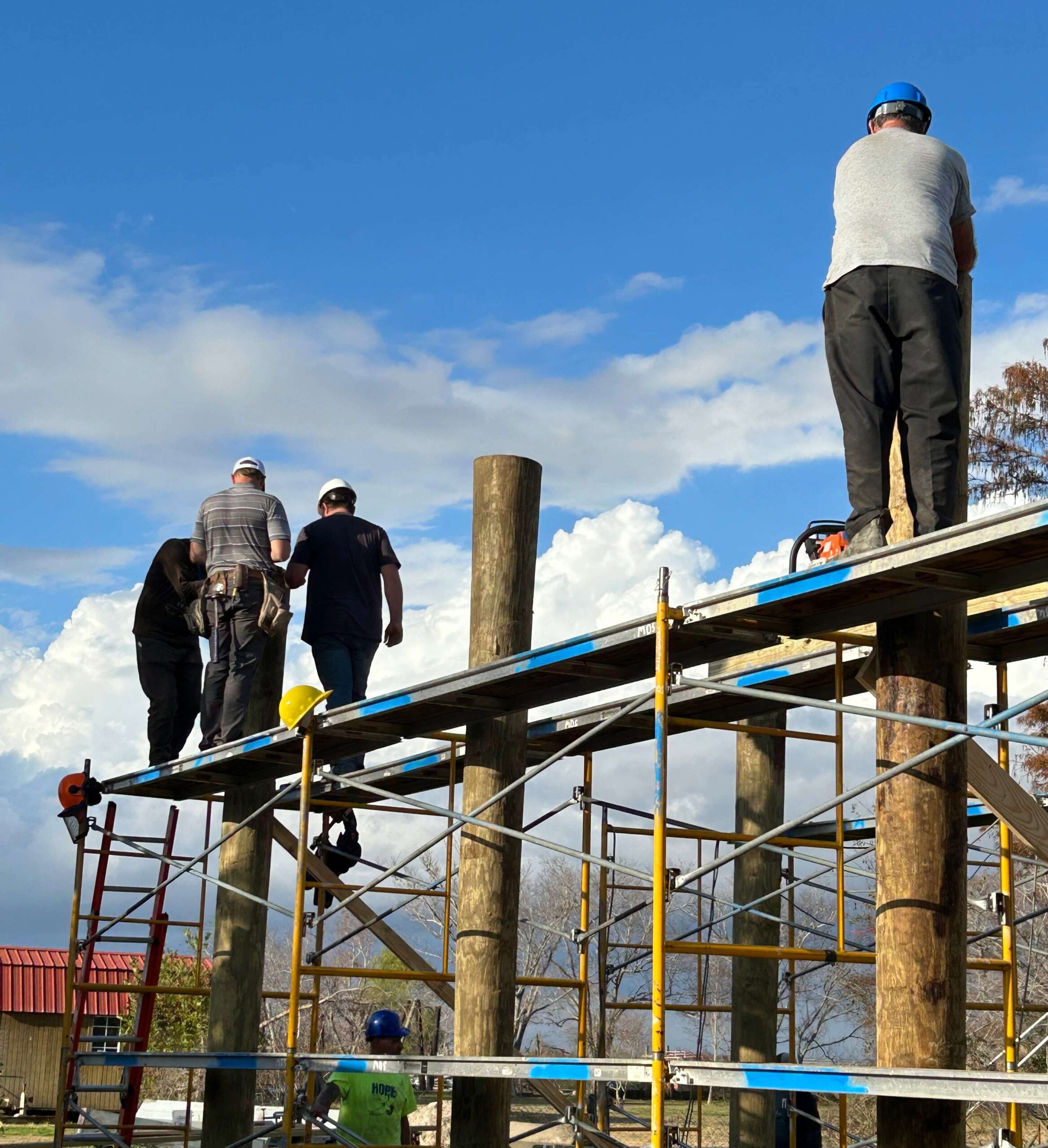 This was a week of celebration as the pylons of the first house were completed on Wednesday. The group continued with small jobs of repair and painting around the neighborhood until they could move to the house site. They soon had the scaffolding up and finished getting the floor joists in by Friday. Due to the impending storm in their hometowns, they finished up a bit early on Friday and headed north. We were thankful to hear when they made it safely home with minimal travel issues.