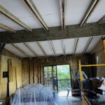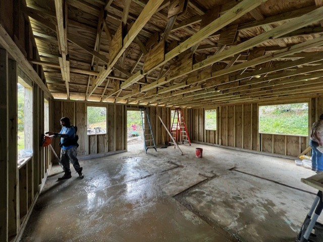 The front wall was reinforced at the Rodriguez house, and sister rafters were placed on all existing rafters. The ridge beam was reinforced. We transported roof metal from Jayuya to Miguel house. We drilled concrete and installed anchor bolts to existing walls.