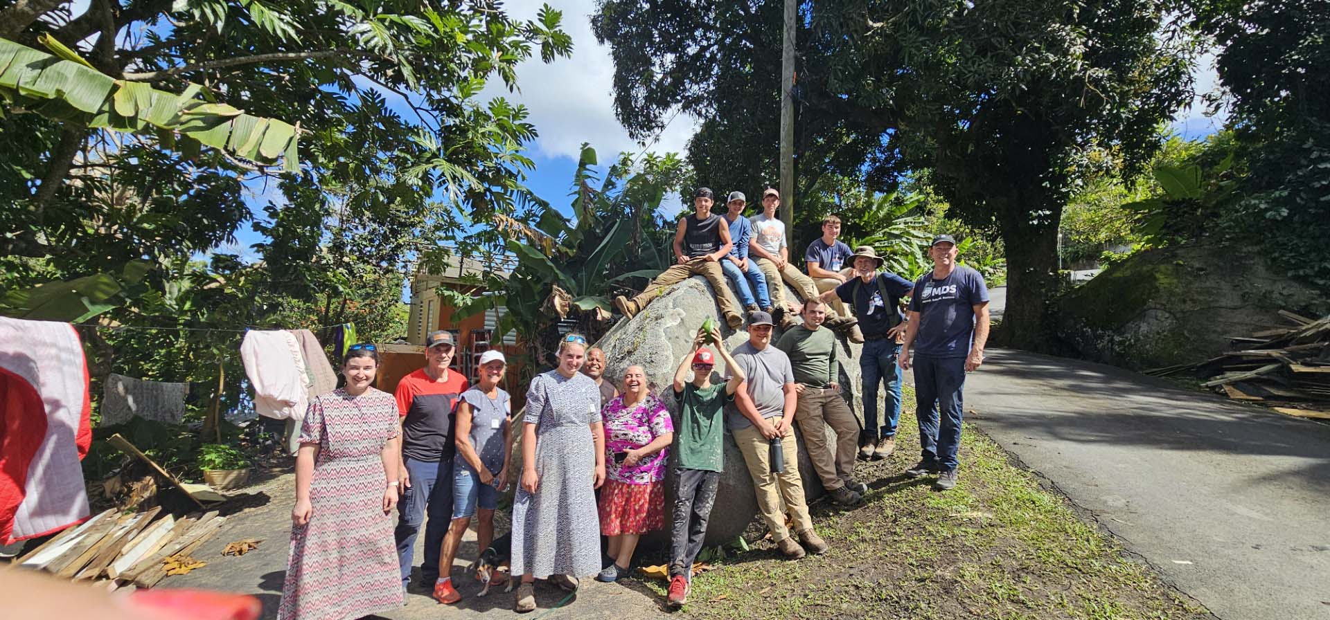 Cleanup in preparation for demolition on Maria’s house began on Wednesday. By Friday trusses were set as well as anchor bolts and hurricane straps. This house is ready for sheathing and steel. A large stone in front of the house has been dubbed “the whale”