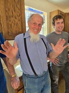 Work at Mr. Lindsey’s house included painting, installing flooring and trim, and hanging doors, shelving and accessories. Concrete work, caulking, and more painting was accomplished. Finally, great effort was focused on cleaning up! Mr. John came by to see the progress and share a bit of his fascinating life story.