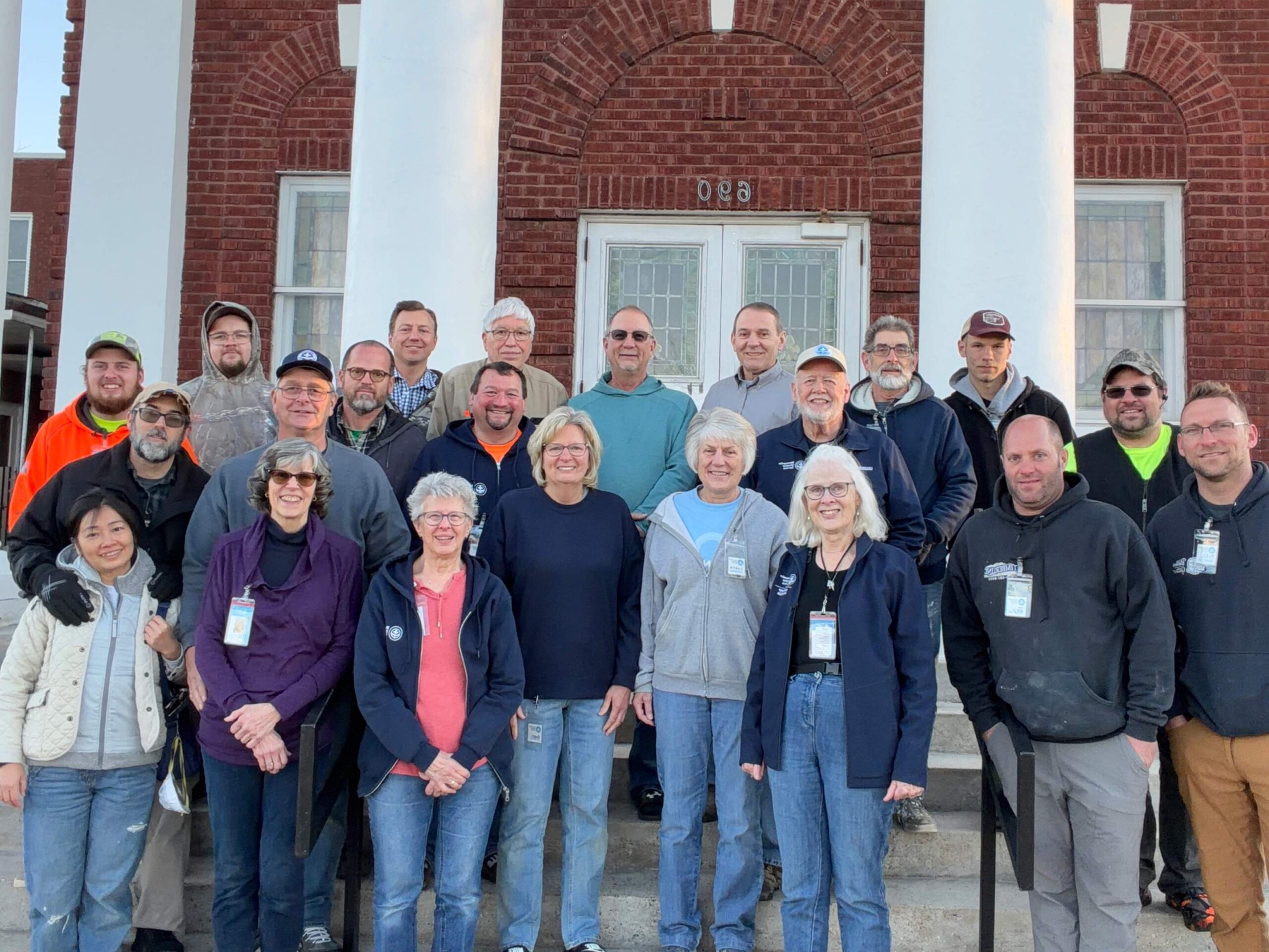 Warmer temperatures allowed some of the volunteers to work on a roof at the Rogers’ house. They began by tearing off the old shingles, making repairs on the roof as needed, and finally putting on the new shingles. They were able to complete the job on Friday morning. She came home to sign the job card, and she was so thrilled. She was proud to be able to show it to her neighbors. On a rainy morning while they waited for the roof to dry, several of the volunteers finished hanging the blinds in the RSAA building. On Friday, that crew worked at the Gyska house, a new build, with Ken from Divine Ministries. They installed joist hangers, hurricane straps and structure bolts.