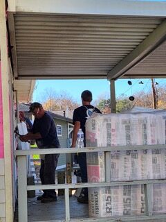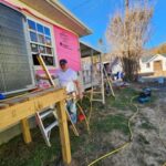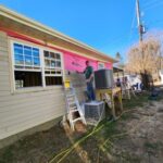 Part of the crew painted the baseboard and window trim at Monica’s house. They even hung curtains! Another team primed cement board and put up insulation, soffit, and fascia at Joi’s house. At Susan’s home, they installed siding on a large portion of the house and will finish next week.