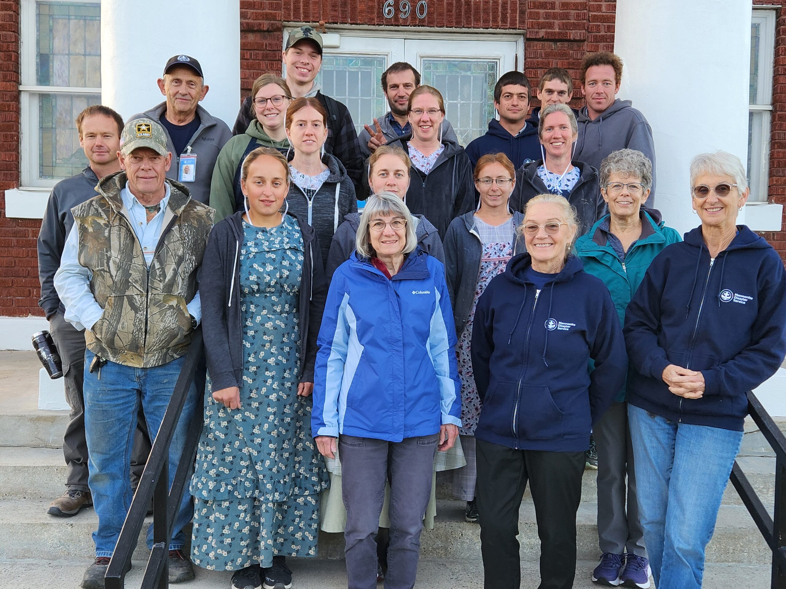 A group of ten young people, six women and four men, arrived from Penn Yan, New York, and Lancaster County, Pennsylvania, on Sunday evening, November 9, to work on repairing houses. A second group of ten, all men from Lancaster County, Pennsylvania, arrived to help build residential bridges.