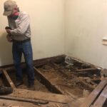 At Monica’s house, the team first removed old flooring and floor joists. They shoveled dirt from under the house and installed new ribbing. After this initial prep work, they installed floor joists, subflooring, and finally the finished flooring and baseboard. They painted two bedrooms and replaced the sheeting on one of the ceilings. Monica expressed her deep appreciation to MDS for the work completed on her house. Along with a pumpkin pie, she sent a note to the team: “I can’t begin to express my gratitude for all the help that I received from Mennonite Disaster Service.”